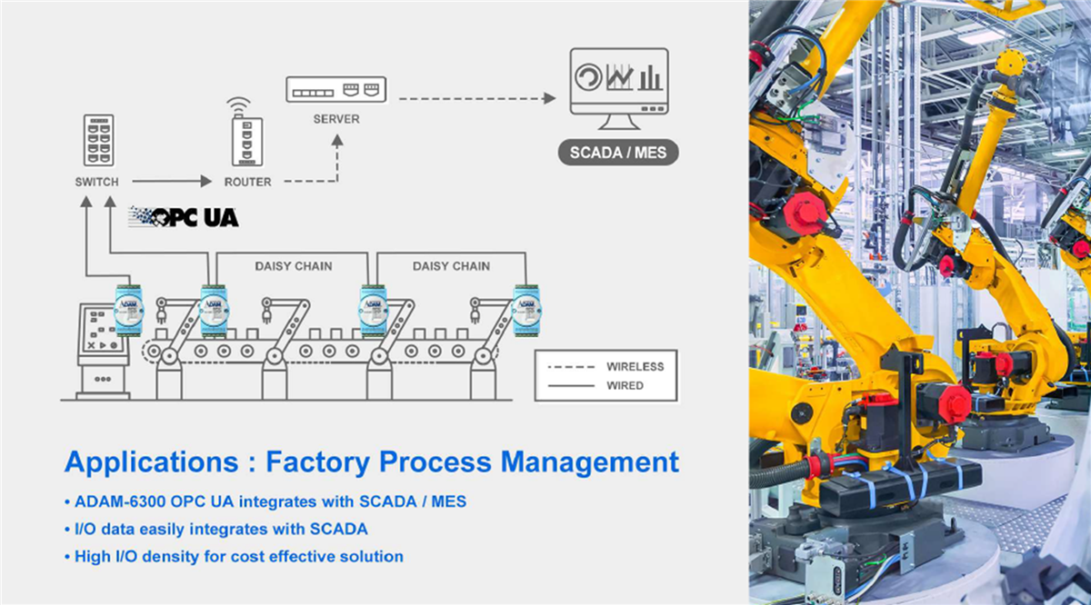 Les modules d'E/S Ethernet OPC UA ADAM-6300 d'Advantech sont conçus pour intégrer les systèmes informatiques aux technologies opérationnelles (OT), en offrant une technologie IoT intelligente pour les usines et les services publics. Les modules ADAM-6300 fournissent une solution convergente OT/TI interopérable, qui se connecte à SCADA et au cloud sans avoir besoin de passerelles. Et grâce à l'OPC UA et à la sécurité intégrée, les données sont hautement sécurisées tout au long des niveaux OT et TI.Les modules d'E/S Ethernet ADAM-6300 d'Advantech prennent en charge à la fois OPC UA et Modbus. L'OPC UA, abréviation de Open Platform Communications Unified Architecture, est une norme ouverte qui permet une collaboration interopérable et entre les fournisseurs de machines en production et rend possible la communication entre les machines et les systèmes. Les données d'E/S peuvent être traitées via Modbus vers les anciens systèmes OT ou intégrées dans SCADA via le cloud et OPC UA.