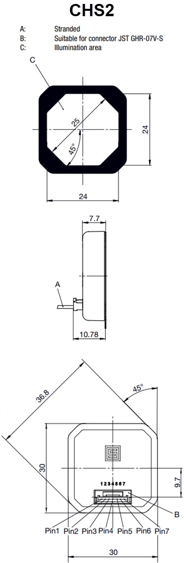 • CHS3 - potted housing and RGB backlit illumination (ideal for harsh conditions)