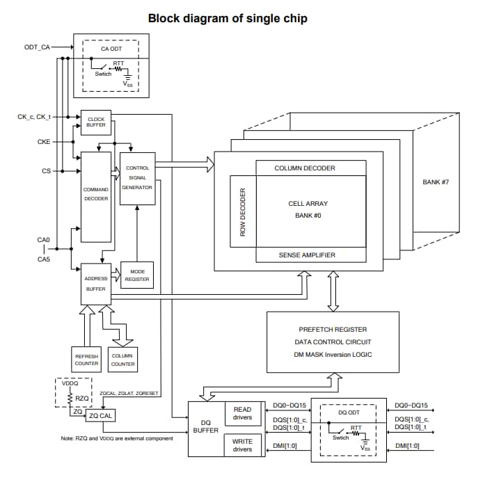 The Single-Die-Package (SDP) provides 16Mb x 16DQ x 8-banks x 1 channel with 2Gb (2,147,483,648 bits) density. The Dual-Die-Package (DDP) offers 16Mb x 16DQ x 8-banks x 2 channels with 4Gb (4,294,967,296 bits) density.